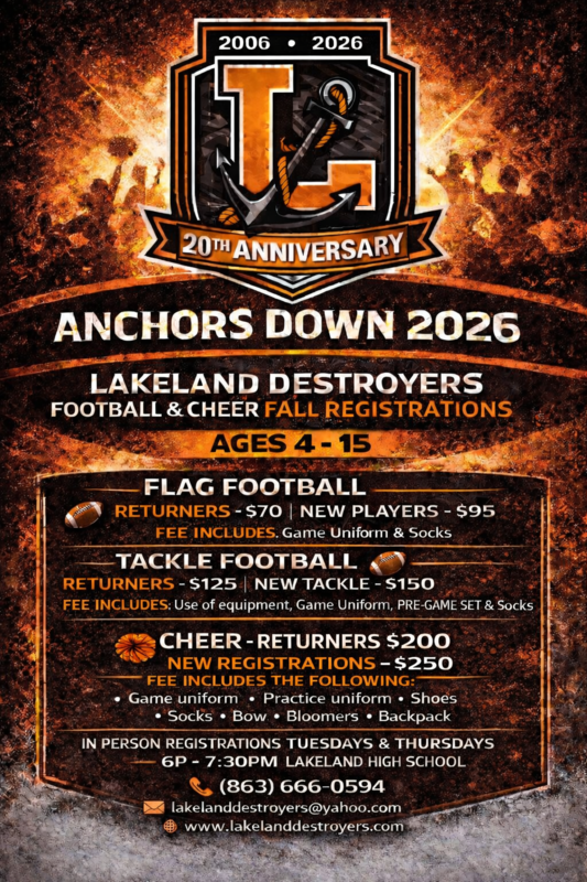 BE SURE TO CLICK THE LAKELAND DESTROYERS LOGO & CHOOSE  FALL 2026 FOOTBAL or CHEER....